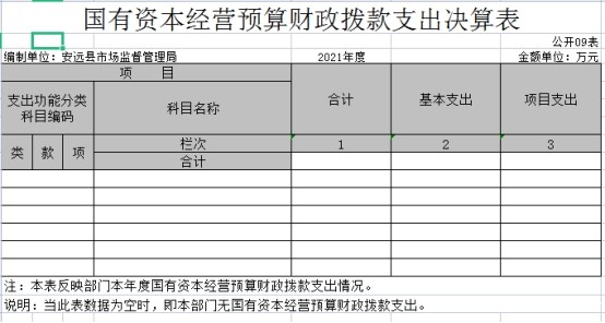 九、国有资本经营预算财政拨款支出决算表
