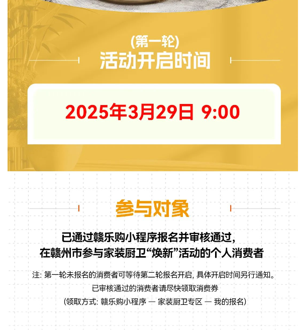 2025年赣州市第一轮家装厨卫“焕新”活动补贴马上开抢!