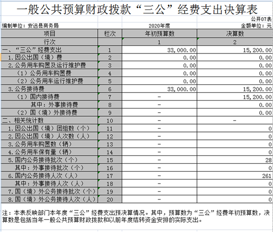 十六、“三公”经费:指各部门因公出国(境)费、公务用车购置及运行费和公务接待费。其中,因公出国(境)费指单位公务出国(境)的住宿费、旅费、伙食补助费、杂费、培训费等支出;公务用车购置及运行费指单位公务用车购置费及租用费、燃料费、维修费、过路过桥费、保险费、安全奖励费用等支出;公务接待费指单位按规定开支的各类公务接待(含外宾接待)支出。