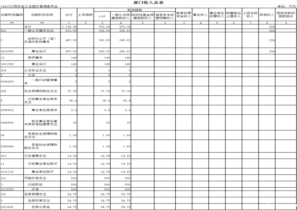 2025年江西安远工业园区管理委员会支出预算总额为1196.06万元,较上年预算安排增加204.05万元,其中: