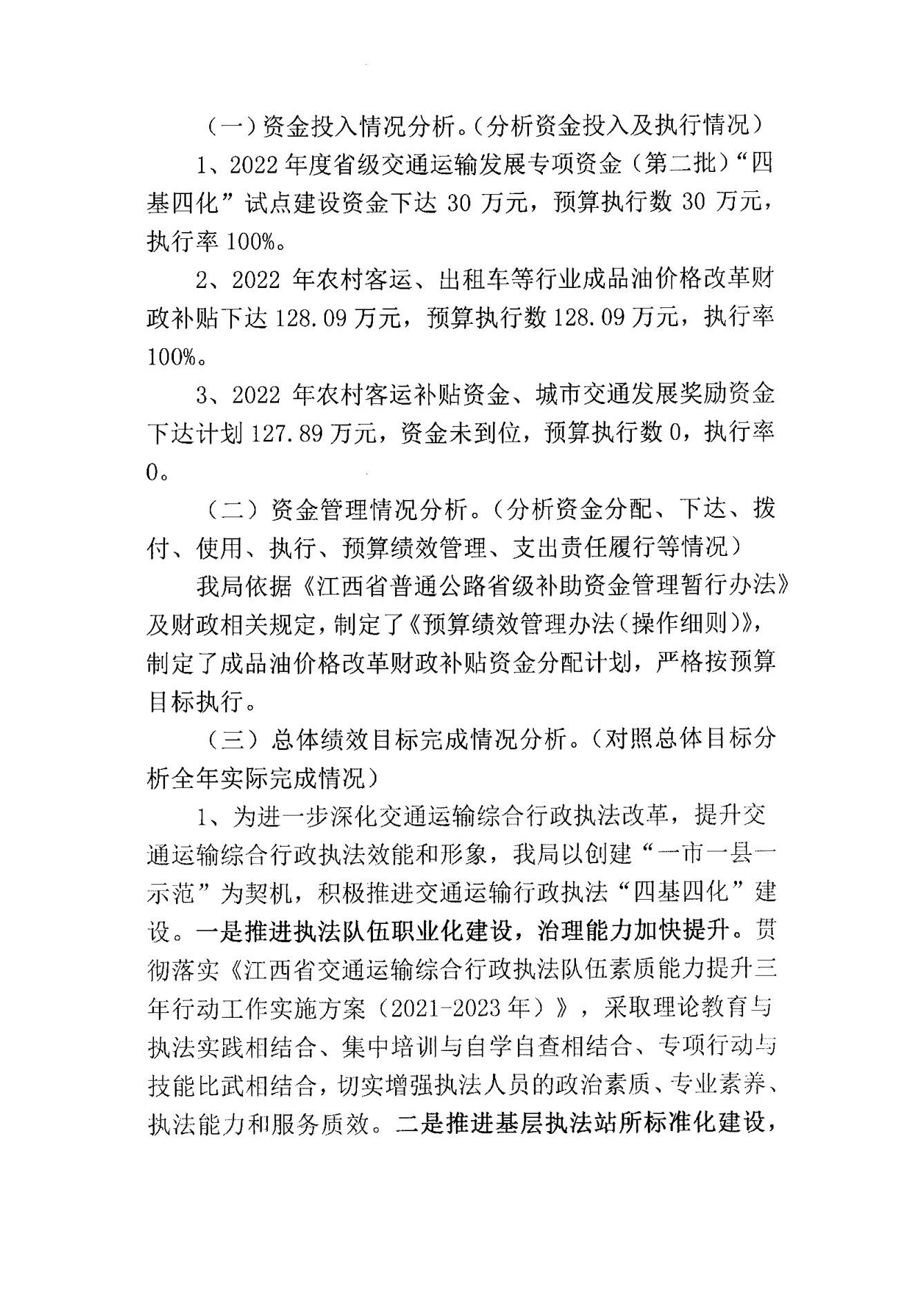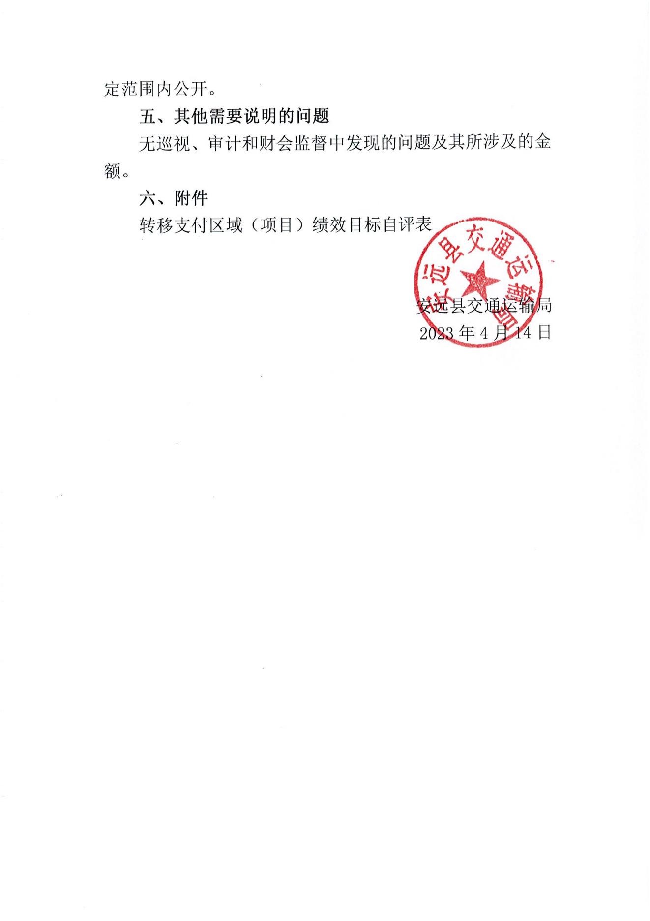 安远县交通运输局2022年安远县转移支付绩效目标自评报告