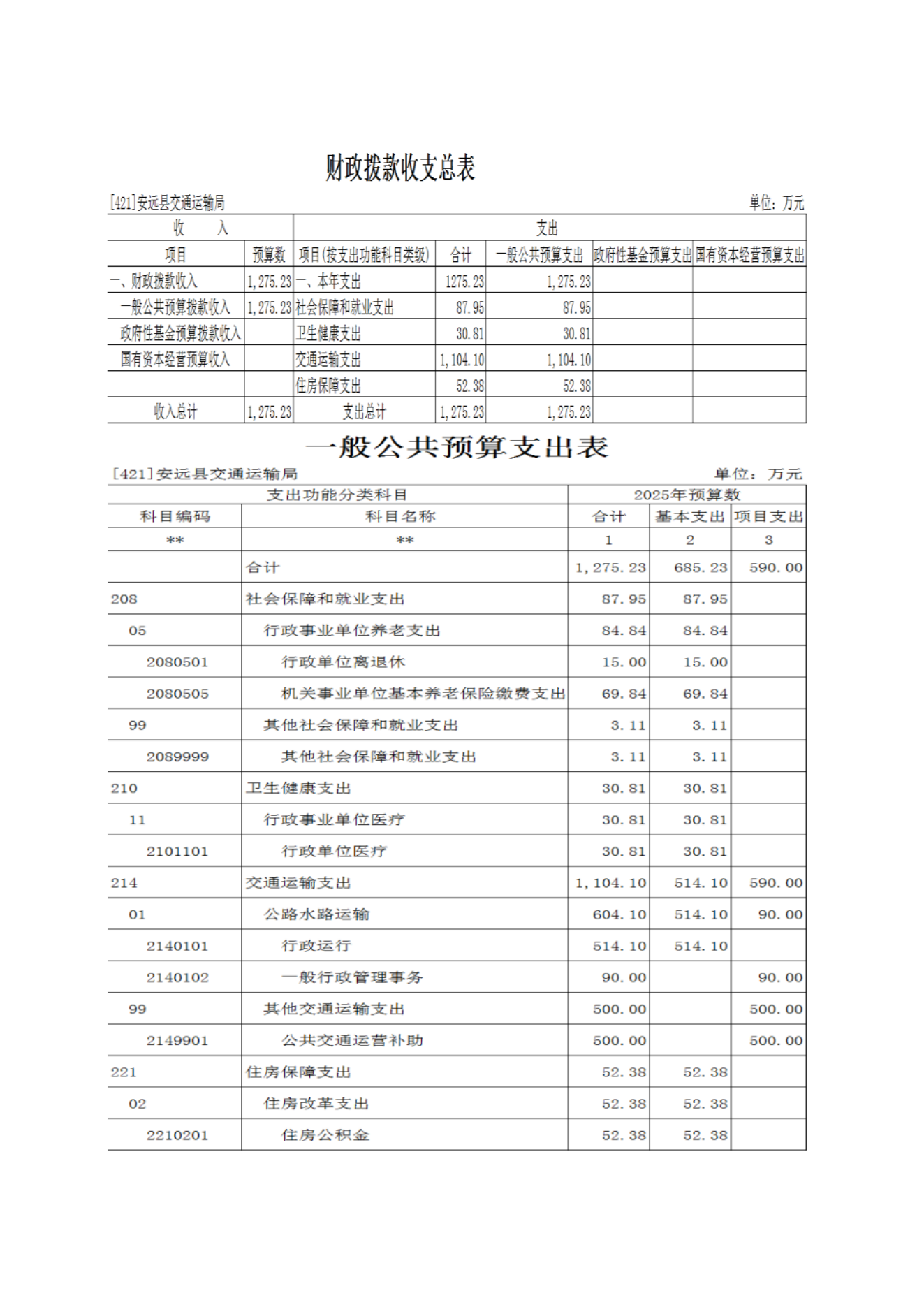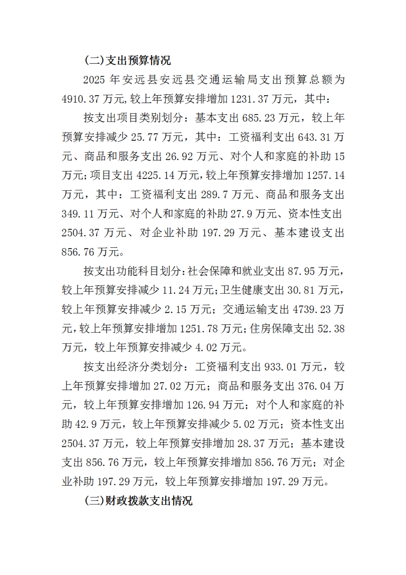 安远县交通运输局2025年部门预算公开