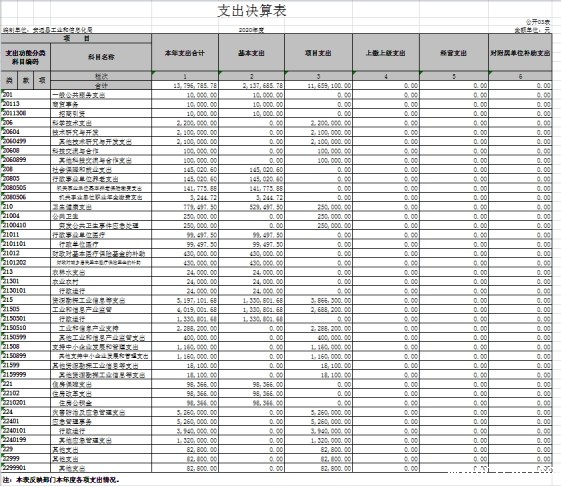 2020年,技术研究与开发支出210万元,中小企业发展专项资金10万元,应急防疫物资生产项目补助资金25万元,智能制造专项奖励金228.82万元,工业经济监测分析平台企业信息40万元,主攻工业先进企业奖励116万元,工业经济监测平台信息报送奖励1.81万元,应急防疫物资生产项目实际补助资金394万元,其他应急管理支出132万元,支出应急物资保障体系建设补助资金8.28万元。