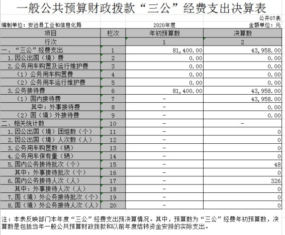 九、“三公”经费:指各部门因公出国(境)费、公务用车购置及运行费和公务接待费。其中,因公出国(境)费指单位公务出国(境)的住宿费、旅费、伙食补助费、杂费、培训费等支出;公务用车购置及运行费指单位公务用车购置费及租用费、燃料费、维修费、过路过桥费、保险费、安全奖励费用等支出;公务接待费指单位按规定开支的各类公务接待(含外宾接待)支出。