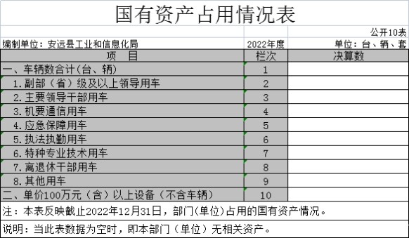 截止2022年12月31日,本部门国有资产占用情况见公开10表《国有资产占用情况表》。其中车辆中的其他用车主要是:无其他用车。