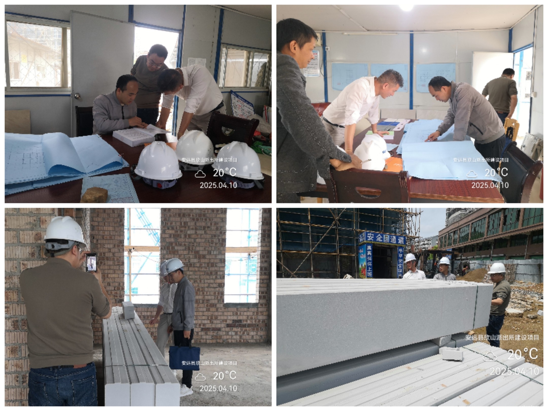 2025年4月10日,安远县住建局建管股工作人员在欣山派出所建设项目现场指导绿色建筑和装配式建筑相关工作。