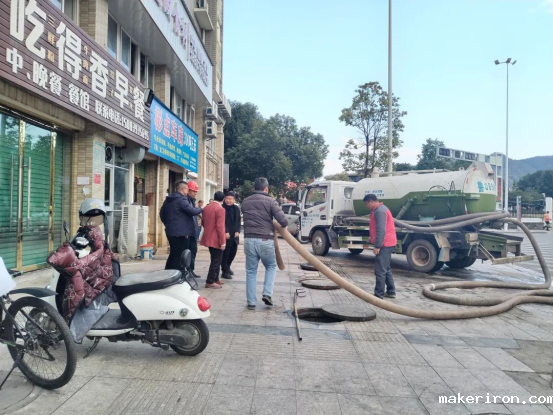 2月11日,第九网格网格职级网格员和石塘社区干部在锦绣江南小区协助业主处理管道堵塞问题。