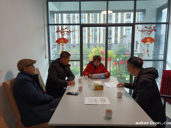 2月11日,第五十五网格网格员、九龙社区干部在水木清华嘉园小区与小区业委会成员协商地下停车场安装新能源充电桩事宜。
