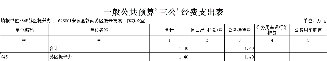 安远县赣南苏区振兴发展工作办公室2020年预算表