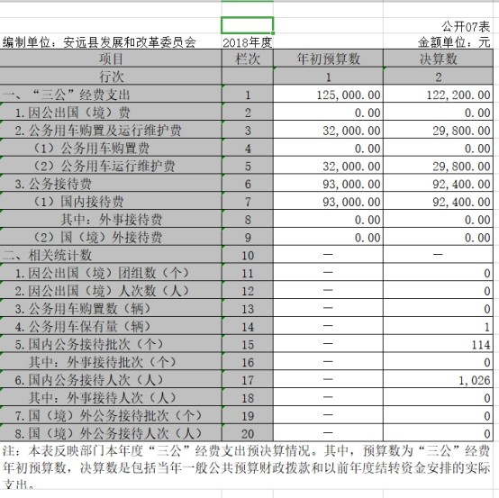 本部门2018年度一般公共预算财政拨款“三公”经费支出年初预算数为 12.5万元,决算数为 12.2万元,完成预算的 97%,决算数较2017年增加减少(减少) 30.1万元,增长(下降) 减19.8少 1 %,其中: