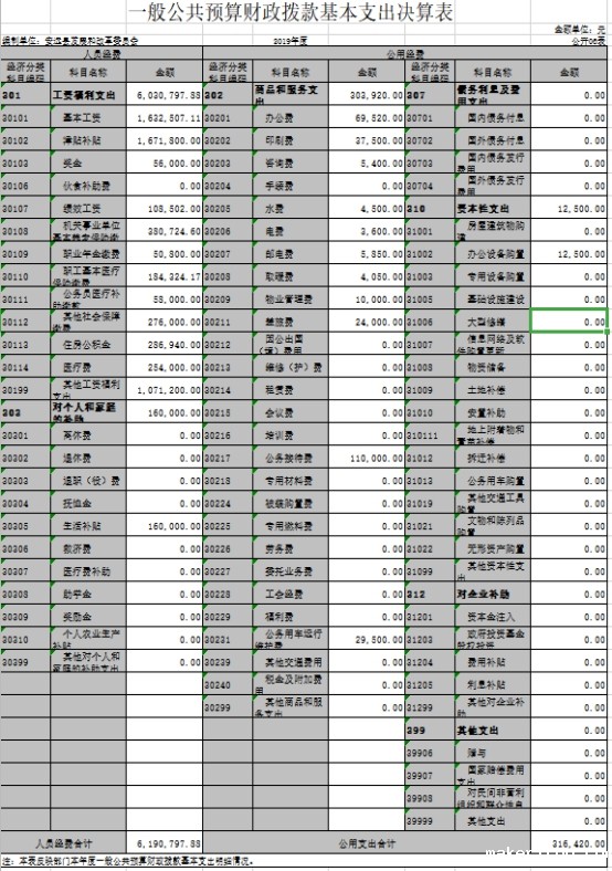 第二部分 2019年度部门决算表