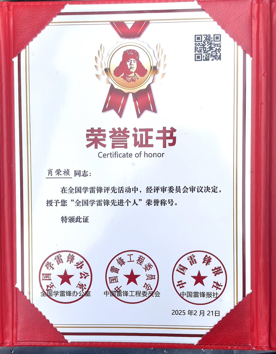 近日,在全国学雷锋办公室、中国雷锋工程委员会中国雷锋报社联合举办的全国学雷锋评先活动中,赣州市融媒体中心驻长沙乡渡屋村第一书记肖荣祯被授予“全国学雷锋先进个人”荣誉称号 。