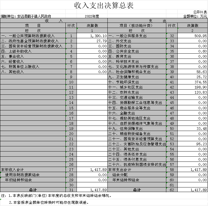 安远县鹤子镇人民政府2022年度部门决算