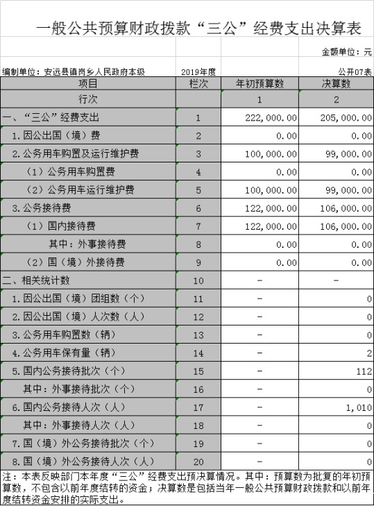 本部门2019年度一般公共预算财政拨款“三公”经费支出年初预算数为 22.2 万元,决算数为20.5万元,完成年初预算的92.34%,决算数较2018年减少6.58万元,下降24.3%,其中:
