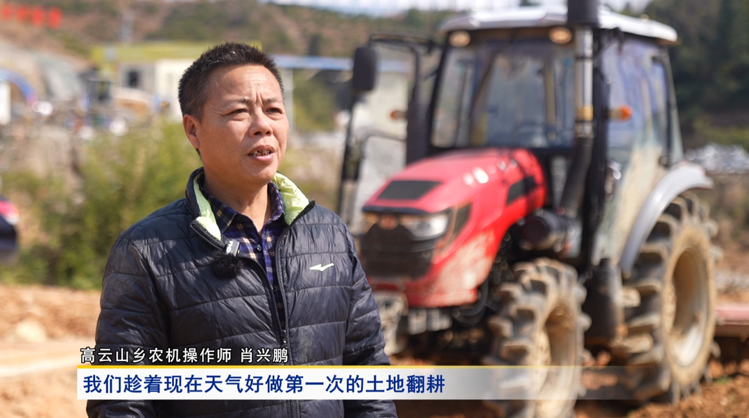 采访 高云山乡农机操作师 肖兴鹏:我们趁着现在天气好做第一次的土地翻耕,为后续的春耕生产做准备。