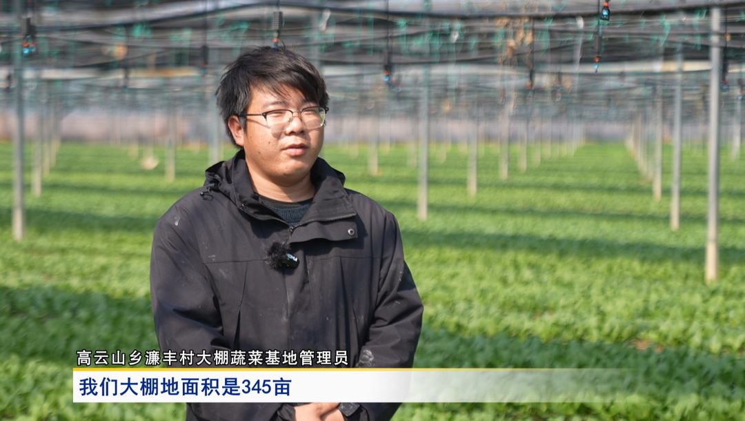 采访 高云山乡濂丰村大棚蔬菜基地管理员 盘杰锐:我们这个大棚蔬菜基地总面积有345亩,目前主要是种植上海青、水青菜、白菜苗等品种,第一茬种植的上海青预计再过个十多天就能进入采收期,亩产大概有1000斤左右。