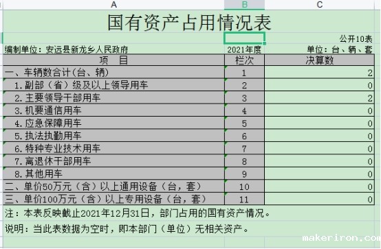 截止2021年12月31日,本部门国有资产占用情况见公开10表《国有资产占用情况表》。其中车辆中的其他用车主要是领导干部公务用车2辆。