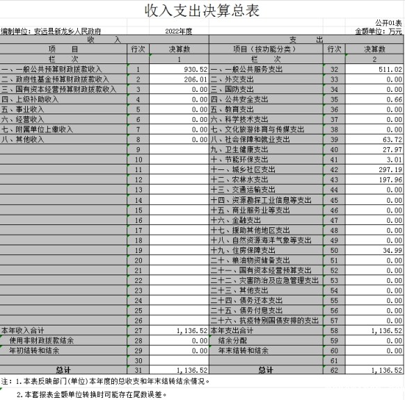 安远县新龙乡人民政府2022年度决算