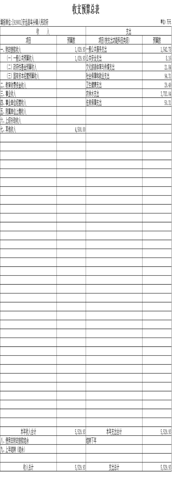 按支出功能科目划分:一般公共服务支出 1542.78 万元,较上年预算安排减少 4126.58 万元;国防支出 0 万元,较上年预算安排增加0万元;公共安全支出 8.16 万元,较上年预算安排增加8.16 万元;教育支出 0 万元,较上年预算安排增加0万元;科学技术支出0万元,较上年预算安排增加0万元;文化旅游体育与传媒支出 21.84万元,较上年预算安排增加21.84万元;社会保障和就业支出94.31万元,较上年预算安排增加94.31万元;卫生健康支出 29.49万元,较上年预算安排增加8.62 万元;节能环保支出 0万元,较上年预算安排增加0 万元;城乡社区支出 0万元,较上年预算安排增加0 万元;农林水支出 3783.04万元,较上年预算安排增加3681.62 万元;交通运输支出 0万元,较上年预算安排增加0 万元;资源勘探工业信息等支出 0 万元,较上年预算安排增加0万元;商业服务业等支出 0 万元,较上年预算安排增加0 万元;金融支出 0 万元,较上年预算安排增加0万元;自然资源海洋气象等支出0万元,较上年预算安排增加0万元;住房保障支出50.31万元,较上年预算安排增加14.99 万元;粮油物资储备支出 0 万元,较上年预算安排增加0 万元;灾害防治及应急管理支出 0 万元,较上年预算安排增加0 万元;其他支出 0 万元,较上年预算安排增加0 万元。
