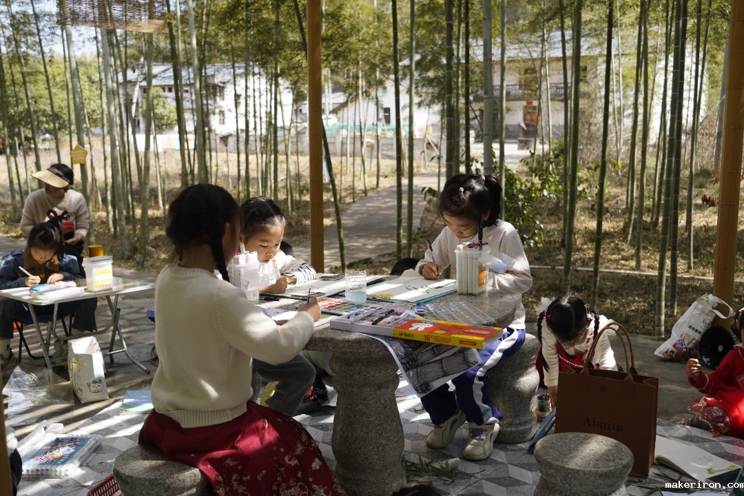 在竹博园的“明阳竹阁”中,孩子们架起画板,用画笔捕捉竹叶的婆娑、竹节的挺拔,不一会儿,一幅幅稚嫩却生动的画作,将竹林的灵动与春日的生机定格。