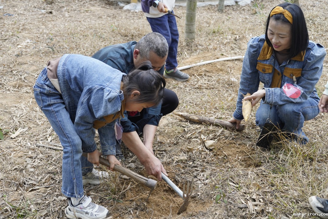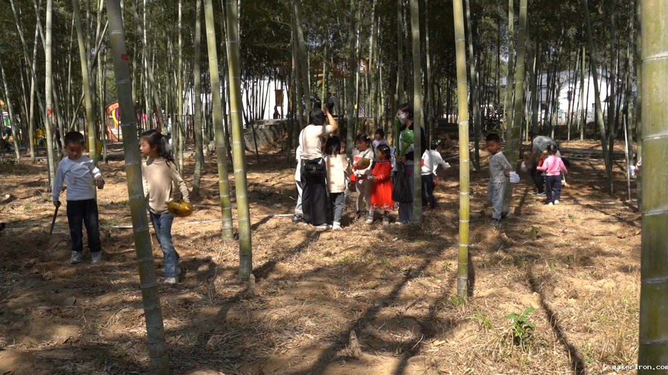 踏入竹林,体验挖笋的乐趣。孩子们手持小锄头,蹲在竹根旁,一边学习辨识冬笋的“藏身秘诀”,一边仔细寻找着冬笋的踪迹,每当发现一颗隐藏的冬笋时,孩子们都会欢呼雀跃,迫不及待地将其挖出。