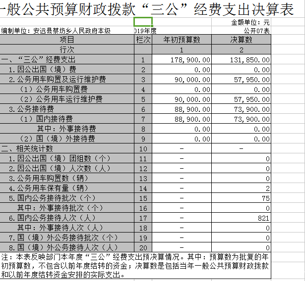 (三)公务用车购置及运行维护费支出5.795万元,其中公务用车购置年初预算数为0万元,决算数为0万元,完成年初预算的0%,决算数较2018年增长0%;公务用车运行维护费支出年初预算数为7万元,决算数为5.795万元,完成年初预算的82.78%,决算数较2018年减少0.005万元,下降0.086%。