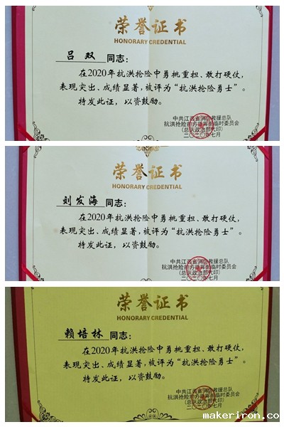 近日,消防救援大队站长吕双、指战员刘发海、政府专职队员赖培林被江西省消防救援总队抗洪抢险前方指挥部临时党委表彰为“抗洪抢险勇士”。