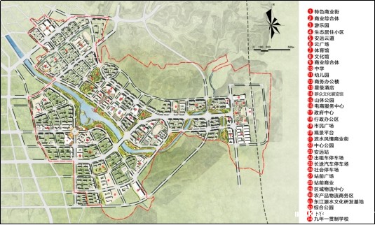 八组团:指铁路组团、商业物流组团、商业混合功能组团、行政商业组团、弹性发展组团、综合服务组团、商住文化功能组团以及宜居组团。