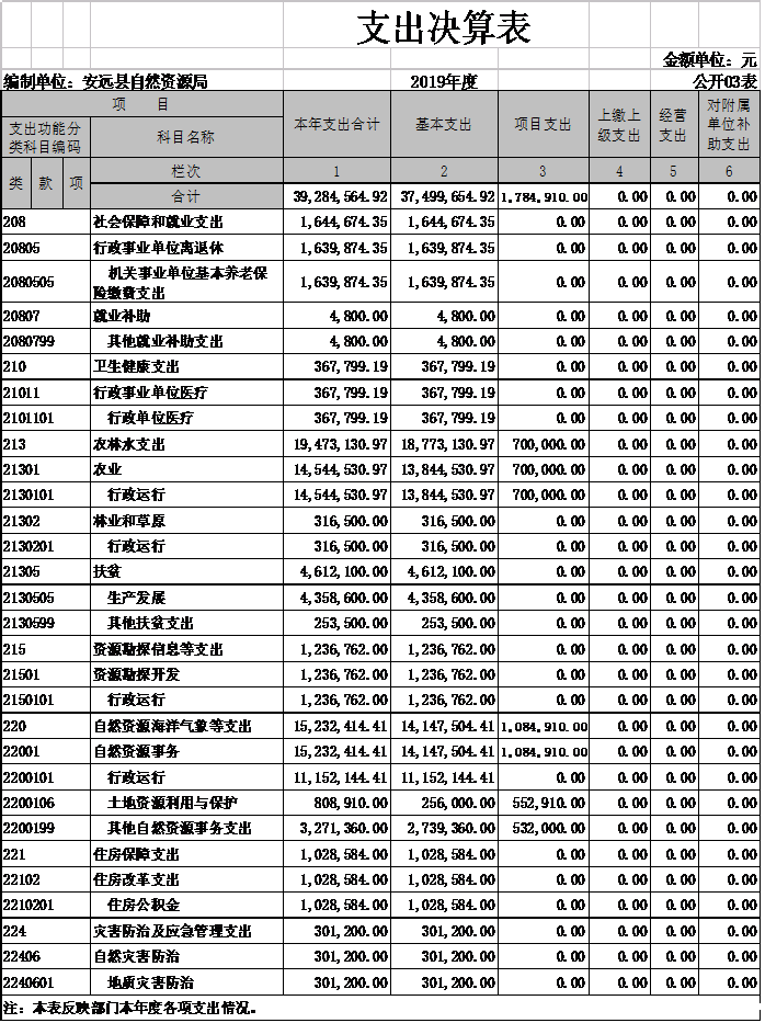 安远县自然资源局机构设置为:(一)办公室。(二)自然资源调查与开发利用股(测绘办)。(三)国土空间规划与生态修复股。(四)详细规划与用途管制股。6个事业单位(一)县土地收储中心、为县国土资源局管理的副科级事业单位、(二)县土地整理中心、(三)县国土资源执法监察大队、(四)县国土资源交易市场管理所、(五)县国土价格中心、(六)各乡(镇)国土所。纳入本部门决算汇编范围的单位共1个。本部门2019年年末实有人数176人,其中在职人员173人,离休人员 0 人,退休人员51人。