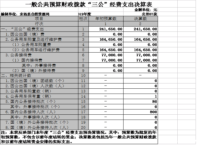 十六、“三公”经费:指各部门因公出国(境)费、公务用车购置及运行费和公务接待费。其中,因公出国(境)费指单位公务出国(境)的住宿费、旅费、伙食补助费、杂费、培训费等支出;公务用车购置及运行费指单位公务用车购置费及租用费、燃料费、维修费、过路过桥费、保险费、安全奖励费用等支出;公务接待费指单位按规定开支的各类公务接待(含外宾接待)支出。