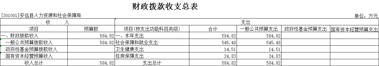 2024年安远县人力资源和社会保障局支出预算总额为584.82万元,较上年预算安排增加 108.6万元; 其中: