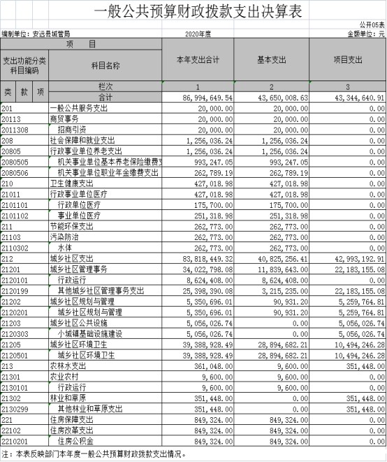 (一)一般公共服务支出年初预算数为8267.63万元,决算数为8723.3387万元,完成年初预算的100%,主要原因是:城乡设施建设支出与城乡社区环境卫生支出增加(安府办抄字[2020]457号)。