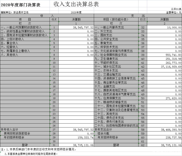本部门2020年度收入总计3854.58万元,其中年初结转和结余15.94万元,较2019年增加703.7万元,增长100%;本年收入合计3838.65万元,较2019年增加775.77万元,增长98.84 %,主要原因是:城区环境卫生扩大,人力物力投入加大。