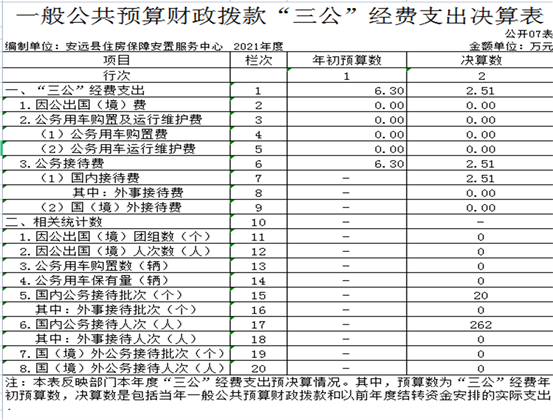 本单位2021年度一般公共预算财政拨款“三公”经费支出年初预算数为6.3万元,决算数为2.51万元,完成预算的0.6%,决算数较2020年增加0.11万元,增加0.04%,其中: