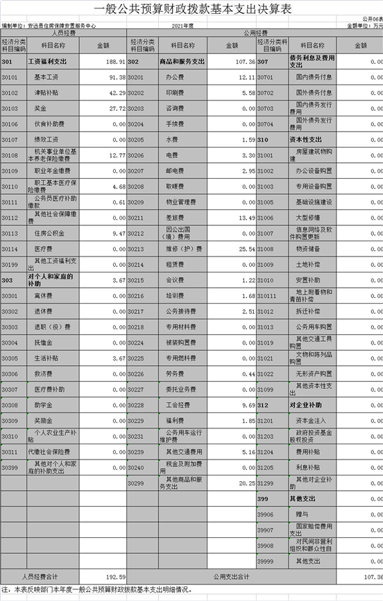 本单位2021年度支出总计342.85万元,其中本年支出合计342.85万元,较2020年增加292.02万元,增长5.75 %,主要原因是:县住房保障安置服务中心于2021年4月顺利组建,期间为住建局代管。2021年11月住保中心班子到位履职,全力推动住保中心各项工作高质量发展。;年末结转和结余0万元,较2020年减少51.35 万元,减少 100 %,主要原因是:收支相等。