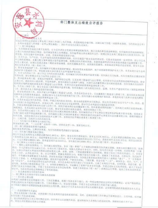 (五)农林水支出年初预算数为463.82万元,决算数为6142.14万元,完成年初预算的1324.25%,主要原因是:水利水保专项资金支出增加,列入省市“十四五”水利发展规划包括“防洪安全建设、供水安全建设、水生态安全建设、水利信息化建设”四大类项目二十三子项目库在2021年度资金支出较大。