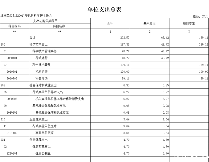 第二部分安远县科学技术协会2022年部门预算表