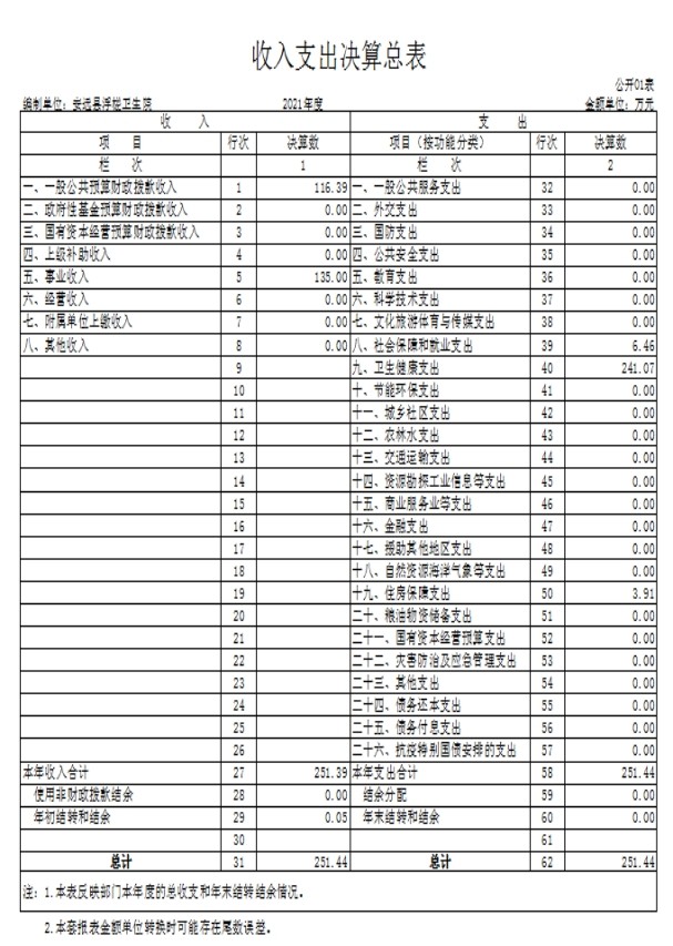 本单位2021年度收入总计251.44万元,其中年初结转和结余0.5万元,较2020年增加0.4万元,增长400%;本年收入合计251.39万元,较2020年增加62.79万元,增长33.29%,主要原因是:财政拨款公卫资金收入增加较多,单位公卫职能增加,相应地增加了财政拨款。
