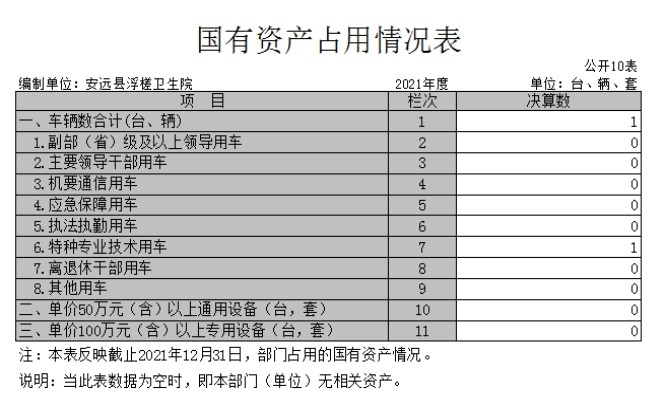 截止2021年12月31日,本单位国有资产占用情况见公开10表《国有资产占用情况表》。其中本单位不存在车辆中的其他用车。