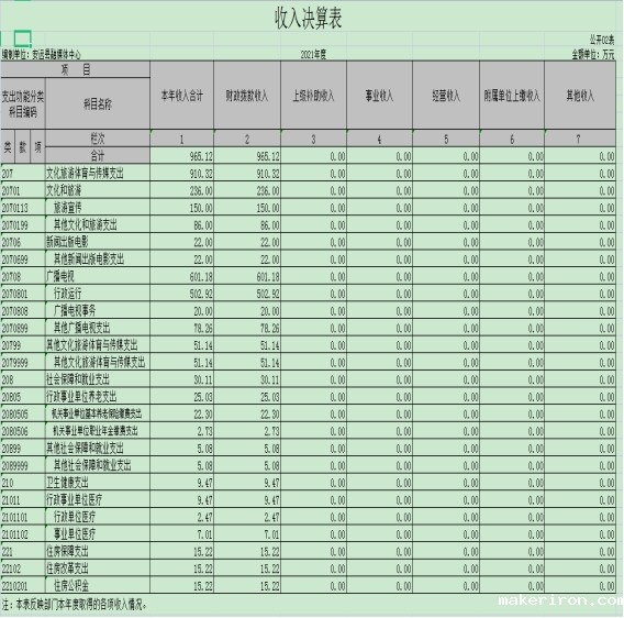 本年收入的具体构成为:财政拨款收入965.11万元,占100%;事业收入 0万元,占 0%;经营收入0 万元,占 0 %;其他收入0万元,占0%。
