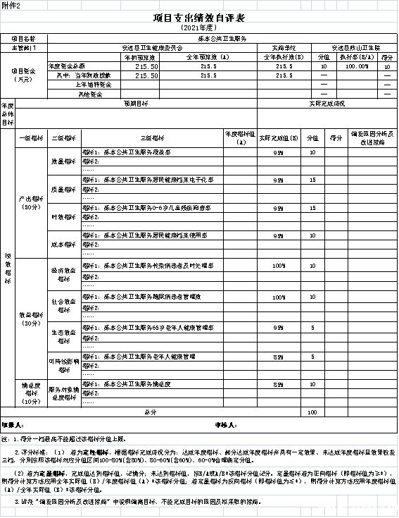 根据预算绩效管理要求,我单位组织对纳入2021年度部门预算范围的二级项目 2 个全面开展绩效自评,共涉及资金 215.5 万元,占项目支出总额的 100 %。