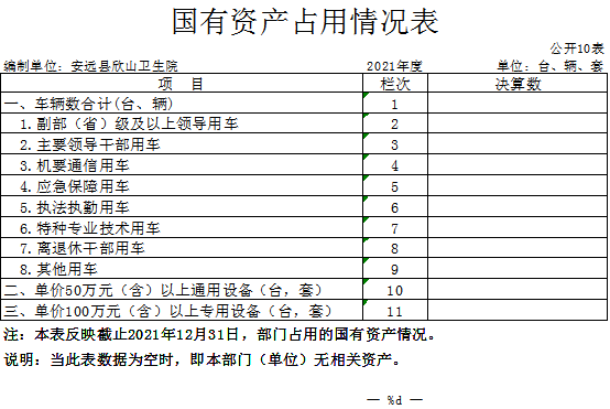截止2021年12月31日,本单位国有资产占用情况见公开10表《国有资产占用情况表》。其中车辆中的其他用车不存在车辆中的其他用车。