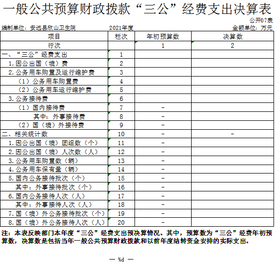 十六、“三公”经费:指各部门因公出国(境)费、公务用车购置及运行费和公务接待费。其中,因公出国(境)费指单位公务出国(境)的住宿费、旅费、伙食补助费、杂费、培训费等支出;公务用车购置及运行费指单位公务用车购置费及租用费、燃料费、维修费、过路过桥费、保险费、安全奖励费用等支出;公务接待费指单位按规定开支的各类公务接待(含外宾接待)支出。