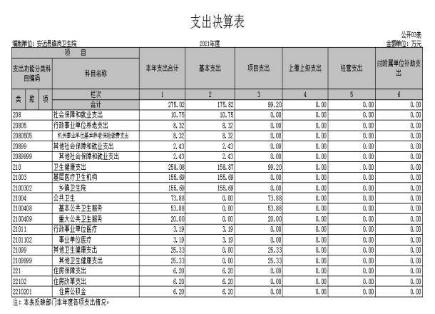 安远县镇岗卫生院2021年度决算