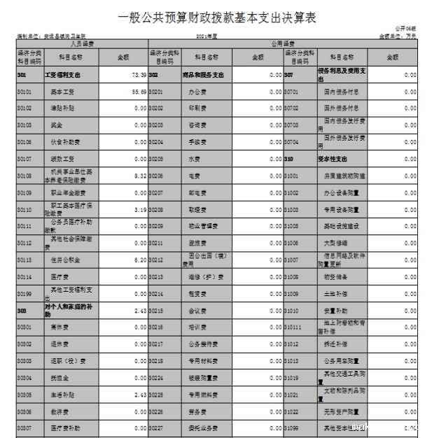 第二部分 2021年度单位决算表