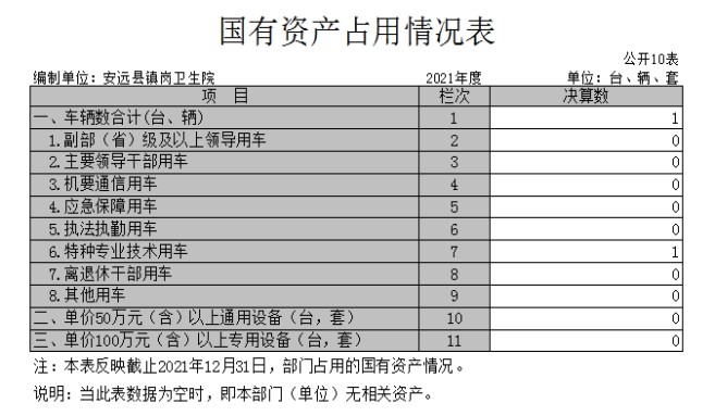 截止2021年12月31日,本单位国有资产占用情况见公开10表《国有资产占用情况表》。其中本单位不存在车辆中的其他用车。