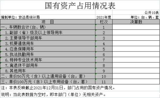截止2021年12月31日,本部门国有资产占用情况见公开10表《国有资产占用情况表》。