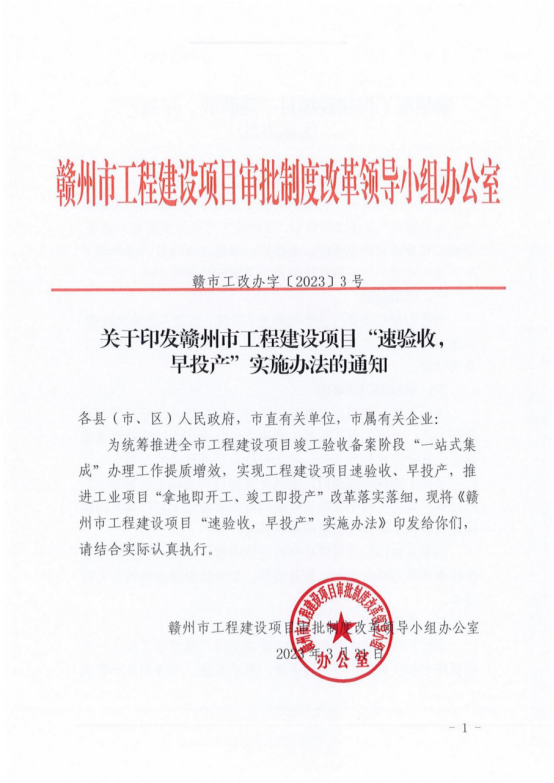 关于印发赣州市工程建设项目“速验收,早投产”实施办法的通知