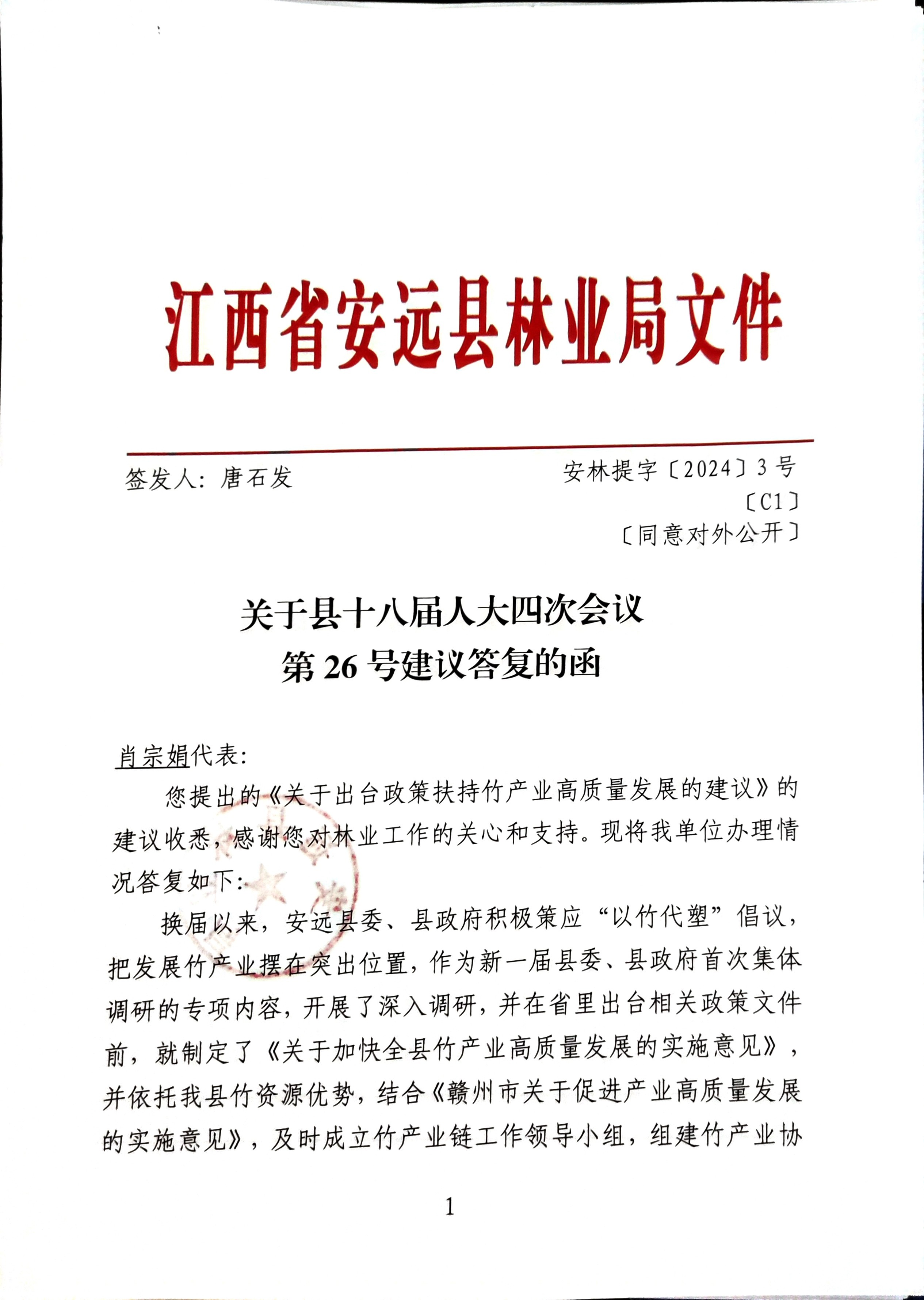 关于县十八届人大四次会议第26号建议答复的函