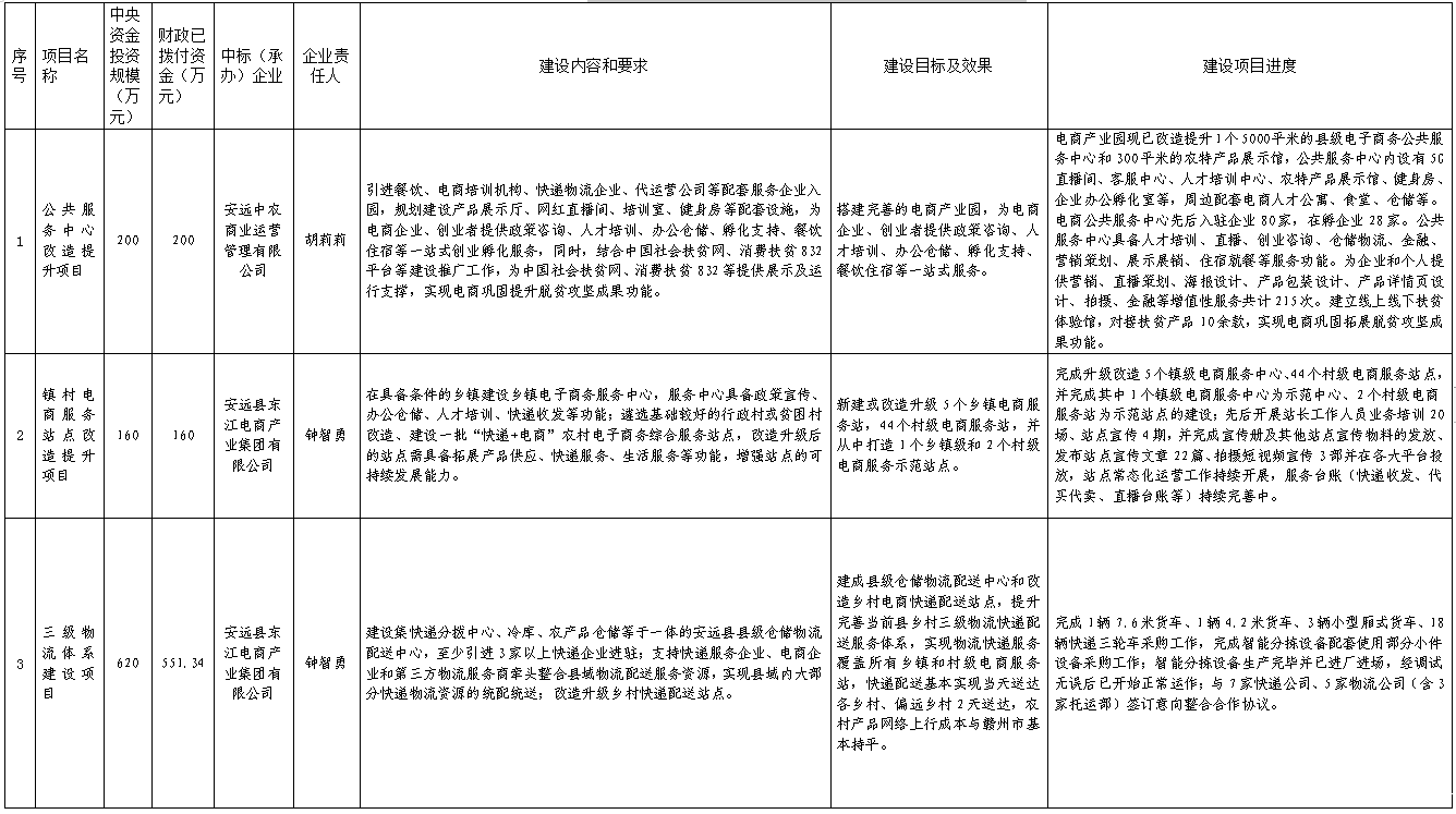 安远县电子商务进农村综合示范项目工作进度表(2024年1月)